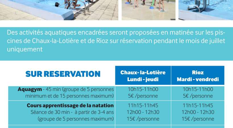 Cours d'aquagym et cours de natation en juillet