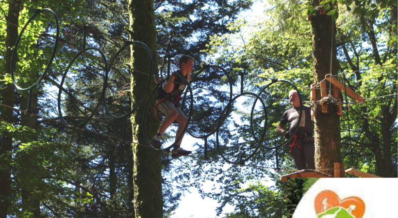 PARCOURS BELLE AVENTURE; un parcours pour tous, en 18 ateliers avec 5 tyroliennes - taille de 1m20 minimum et sous la responsabilité d'un adulte.