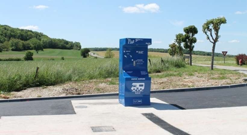 Ouverte toute l'année, borne type flot bleu à monnayeur 2€.