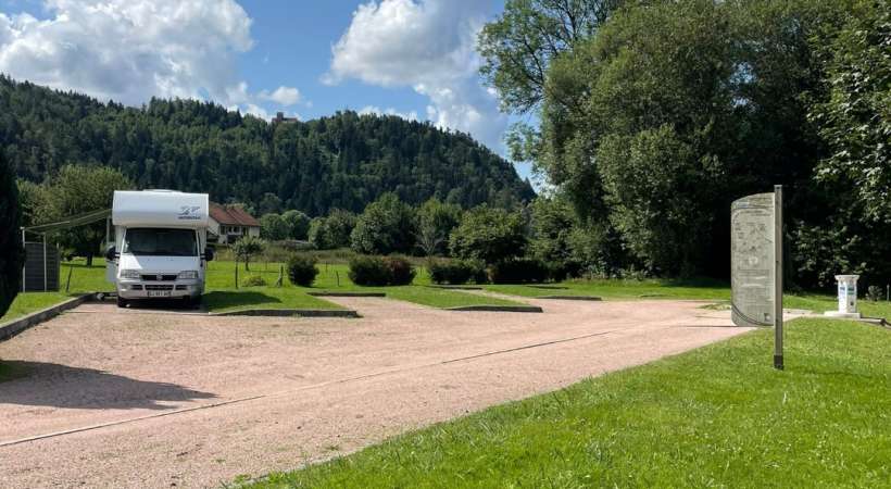 Stationnement gratuit pour 6 camping-cars, ouvert toute l'année sans réservation.