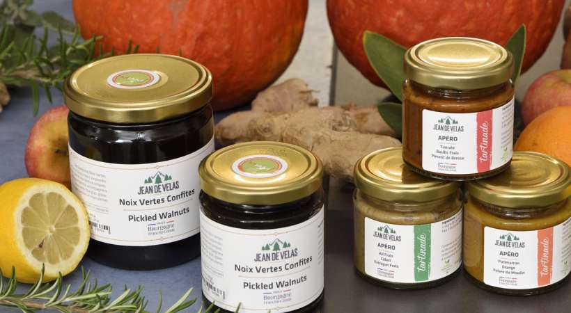 Nous proposons, sous la marque Jean de Velas, une large gamme de vinaigres , de tartinades, de vinaigrettes artisanaux ainsi que des Noix Vertes Confites/ Pickled Walnuts - un condiment unique sur le marché français. Tous les produits sont fabriqués à 100% dans notre atelier à Vitrey sur Mance selon des recettes originales, sans colorant artificiel ni conservateur. Les ingrédients utilisés proviennent en majorité de Bourgogne Franche Comté, de producteurs et maraîchers locaux.