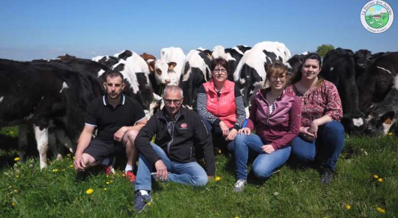 L’exploitation compte une soixantaine de vaches laitières de race Montbéliarde et Prim’Holstein nourries avec les fourrages et céréales récoltés sur nos terrains.