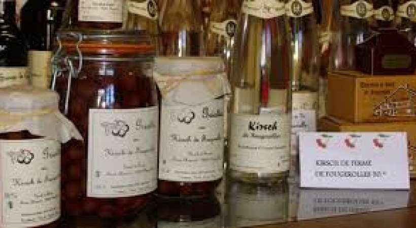 Groupement de producteurs, Kirsch et Terroir- la ferme Chassard vous invite à découvrir sa vitrine de produits en particulier le kirsch de Fougerolles. Produits : kirsch de ferme, eaux de vie et liqueurs de pays, apéritif à la cerise "Lo cul dra haut", crème de cerise, munster fermier, miel, sirop, confitures.